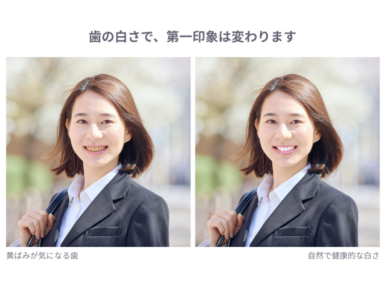 歯の白さは、単に口元の美しさだけでなく、肌映りやファッションの見え方 にまで影響します。