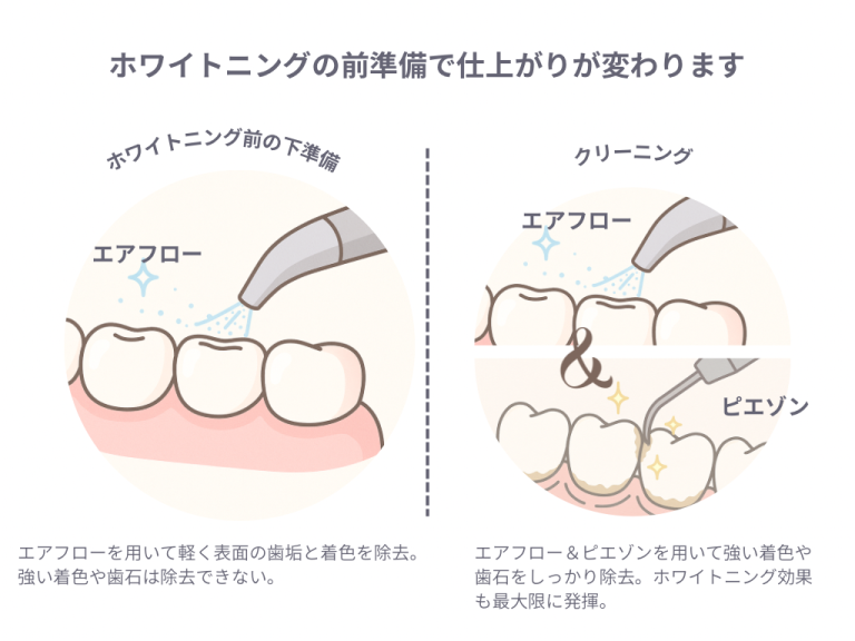 ホワイトニング前に知っておきたいケア|クリーニングとエアフローの違い